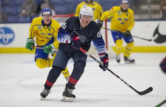 Sweden opened the scoring 2:31 into the frame when Marcus Karlberg skated down the right side and fired a slap shot past the blocker of U.S. netminder Dustin Wolf (Tustin, Calif.) for a shorthanded tally.