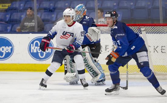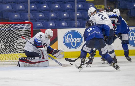USA Blue took control from the opening face-off, generating a series of chances throughout the first five minutes of play. A pair of U.S. penalties towards the middle of the frame resulted in the U.S. penalty kill, backed by the strong goaltending play of Spencer Knight (Darien, Conn.), to come up strong and deny a pair of Finland chances.