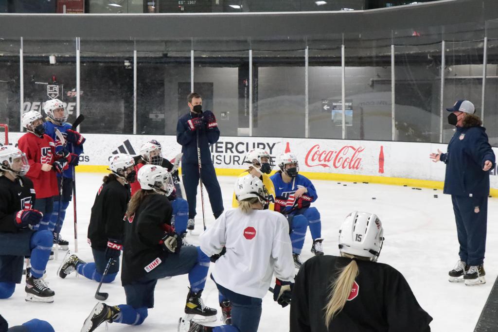 It’s the day before the team’s semifinal matchup against Finland, so the team was focused and ready to go as they hit the ice for practice.