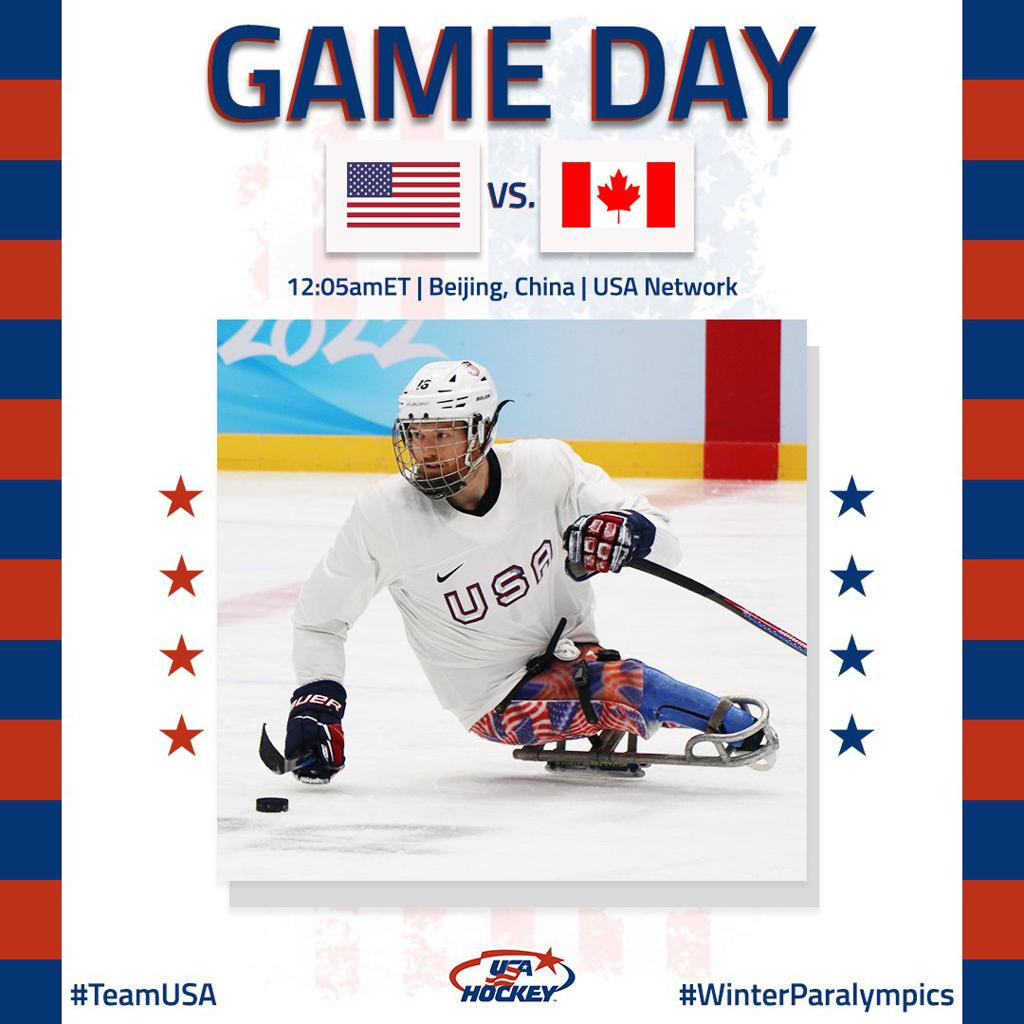 The U.S. Paralympic Sled Hockey Team opens the 2022 Paralympic Winter Games today against Canada. Puck drop is slated for 12:05 a.m. ET (1:05 p.m. local time) at the Beijing National Indoor Stadium in Beijing, China.