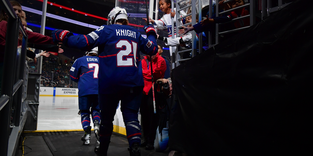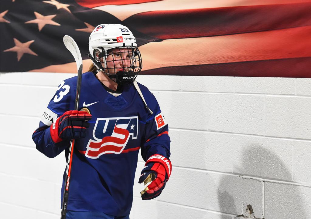 Just 15 seconds into the third, Coyne Schofield recorded her second of the game to put the U.S. up 5-3. After a short-range shot from Knight that hit the post, Alex Carpenter (North Reading, Mass.) collected her rebound and put another tough-angle blip on net, which Coyne Schofield collected for the score.