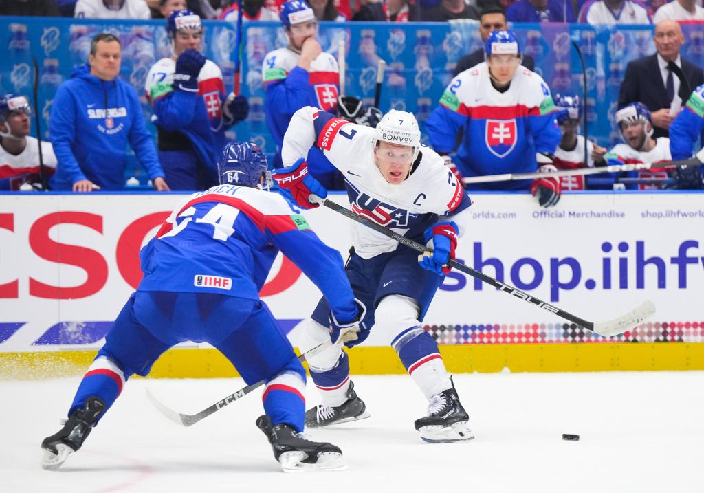 Armed with 14 first-round NHL draft picks and more than 7,000 games of NHL experience, the U.S. Men’s National Team arrived here in Bratislava this morning to begin a short three-day pre-camp ahead of the 2024 IIHF Men’s World Championship that will culminate with the squad’s only pre-tournament game on Tuesday night against Slovakia.