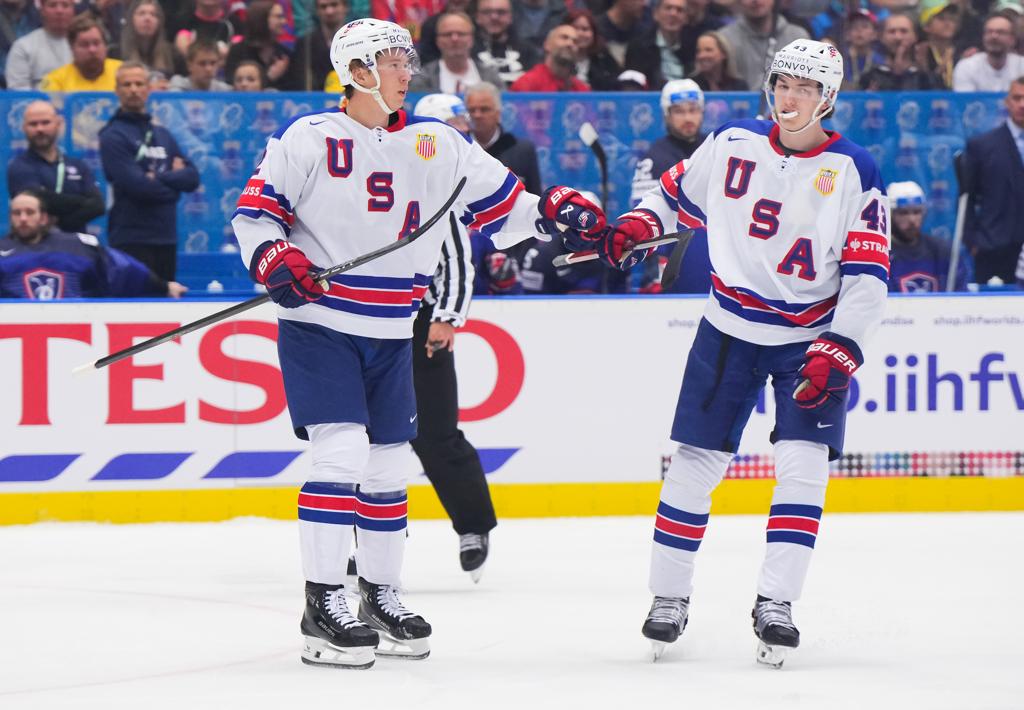 Cole Caufield (Stevens Points, Wis./Montreal Canadiens) had two goals and two assists and Matt Boldy (Millis, Mass./Minnesota Wild) and Brady Tkachuk (St. Louis, Mo./Ottawa Senators) each had a goal and an assist to help propel the U.S. Men’s National Team to a 6-3 victory here today in its final preliminary round game of the 2024 IIHF Men’s World Championship. The win was the fourth straight for Team USA.. For the full recap, click HERE.