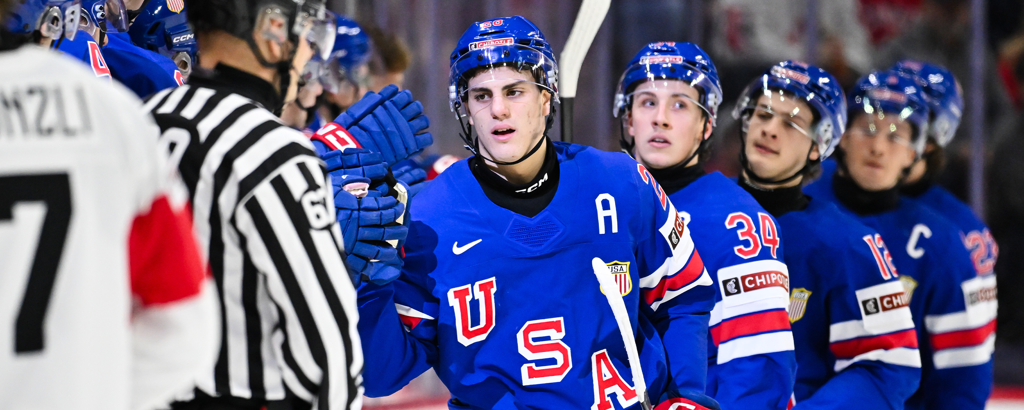 OTTAWA, Ontario – Ryan Leonard (Amherst, Mass./Boston College) and James Hagens (Hauppauge, N.Y./Boston College) each scored twice as the U.S. National Junior Team defeated Switzerland, 7-2, in the quarterfinal round of the 2025 IIHF World Junior Championship here today.