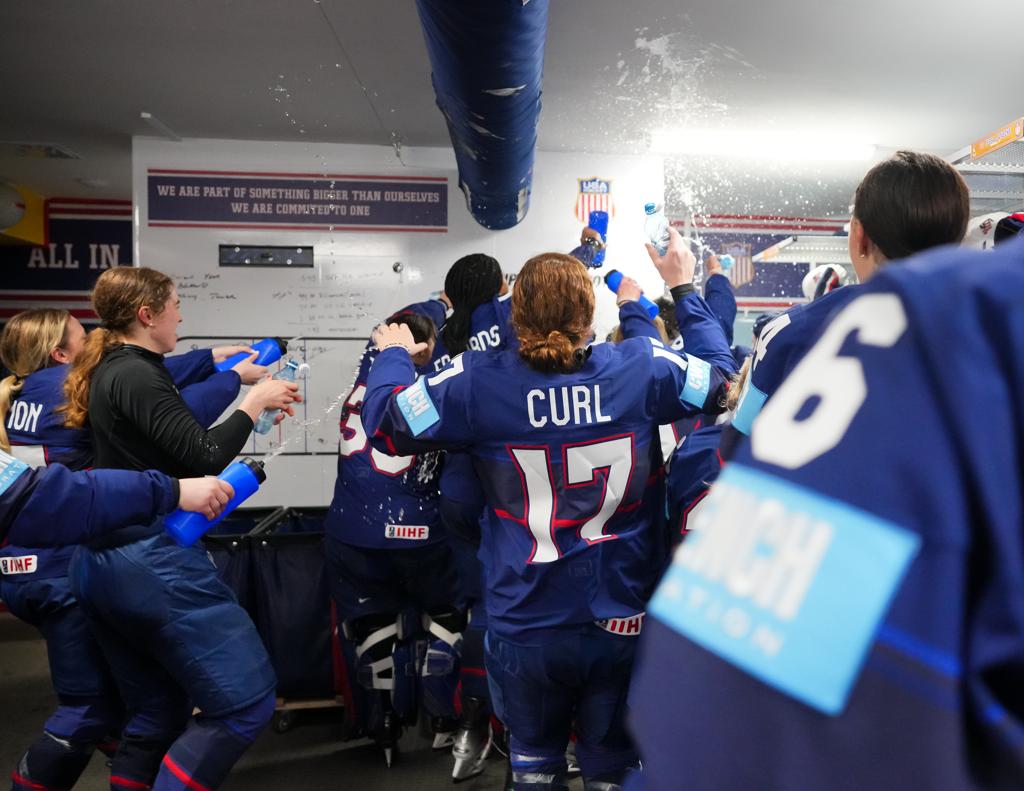 It was a record-breaking Knight on Tuesday as Hilary Knight recorded her 50th career Women’s World Championship assist, breaking the IIHF Women’s World Championship all-time assist record. The team celebrated her accomplishments in the locker room showering her with a hugs, cheers and a little water bottle bath. Relive the historic evening through photos and video below.