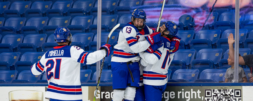 DiCunzolo scored twice in 35 seconds to extended Team USA’s lead to 6-3. He first scored on a point-blank shot set up by Ethan Sung (Pasadena, Calif.) before scoring his second on a 2-on-1 chance, also assisted by Sung, to give the U.S. a three-goal advantage.