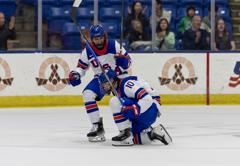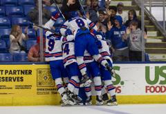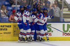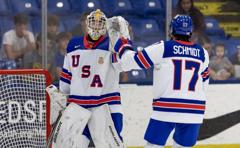 U.S. netminder Mason Courville (Palmyra, Pa.) kept the U.S. within two with a sprawling stop on a following a cross-ice pass with 2:53 to play. He finished the contest with 25 saves.