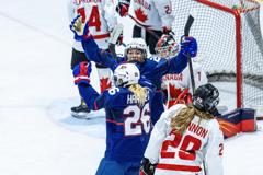 A power play carried over late from the second, and just 34 seconds into the third, Kelly Gorbantenko (Barrington, Ill.) gave the U.S. a 3-2 lead, chipping the puck over the glove of Canada’s netminder as she fell to the ice.