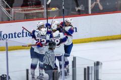 Early into the second Jillian McLaughlin (Oceanside, Calif.) created separation in the high slot, carrying the puck in tight unmarked. She caught the goalie sprawled out, but the shot trickled wide. With 15:07 remaining in the second, Sloane Hartmetz (Phoenixville, Pa.) knotted the game at 1-1, fooling the goaltender on a fake pass from just inside the faceoff dot.