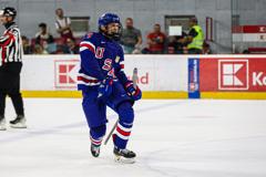 U.S. netminder Brady Knowling (Chicago, Ill.) made a cross-crease save with 2:33 remaining in the third period, sliding across and smothering the chance to keep the U.S. ahead by one. Knowling finished the game with 26 saves.