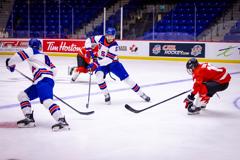 Carter Sanderson (Pierre, S.D./Muskegon Lumberjacks) nearly tied the contest at 10:11 of the middle frame, blasting a one-timer on goal following a cross-ice feed from Ashton Schultz (Excelsior, Minn./Chicago Steel), but his shot was stopped by Canadian netminder Kale Osipenko.