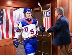 Ziemer picked up right where he left off in the second going bar down off a drop pass from James Hagens (Hauppauge, N.Y./Boston College) just 1:12 into the period to give the U.S. a 1-0 lead.