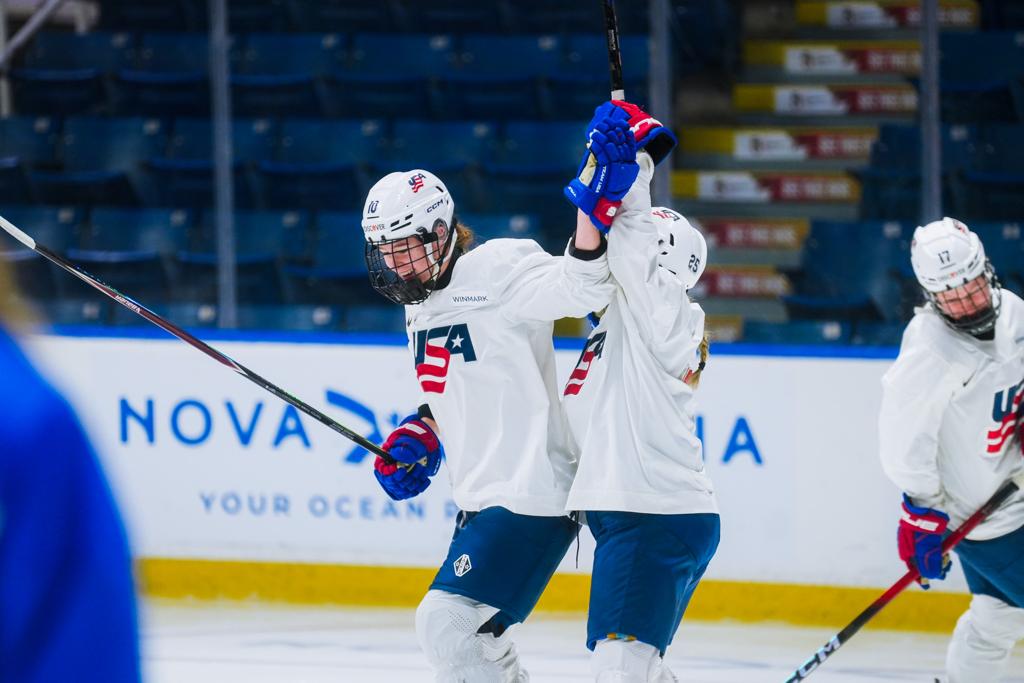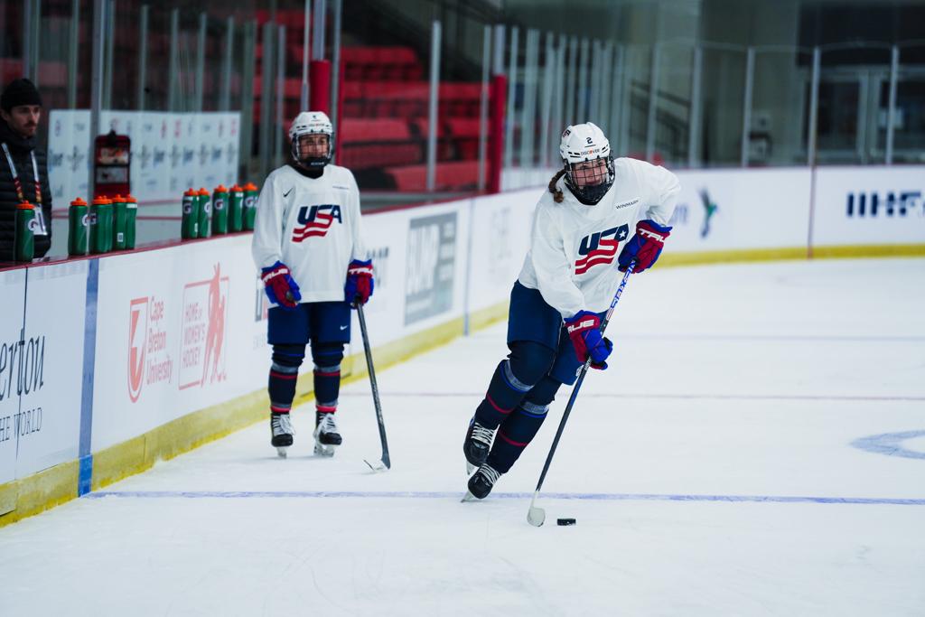 Team USA awoke on day two in Halifax to a dusting of snow and flurries. After a hearty breakfast, the team hopped on the bus to head to practice where it was a full two hours of action on the ice. On today’s docket was working on breakouts, in zone offensive and defensive concepts, before wrapping up the time on the ice with a 5-on-5 scrimmage.