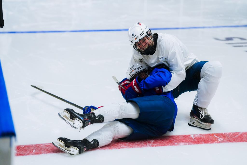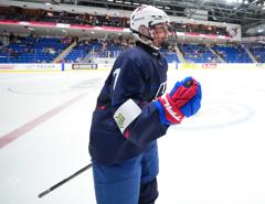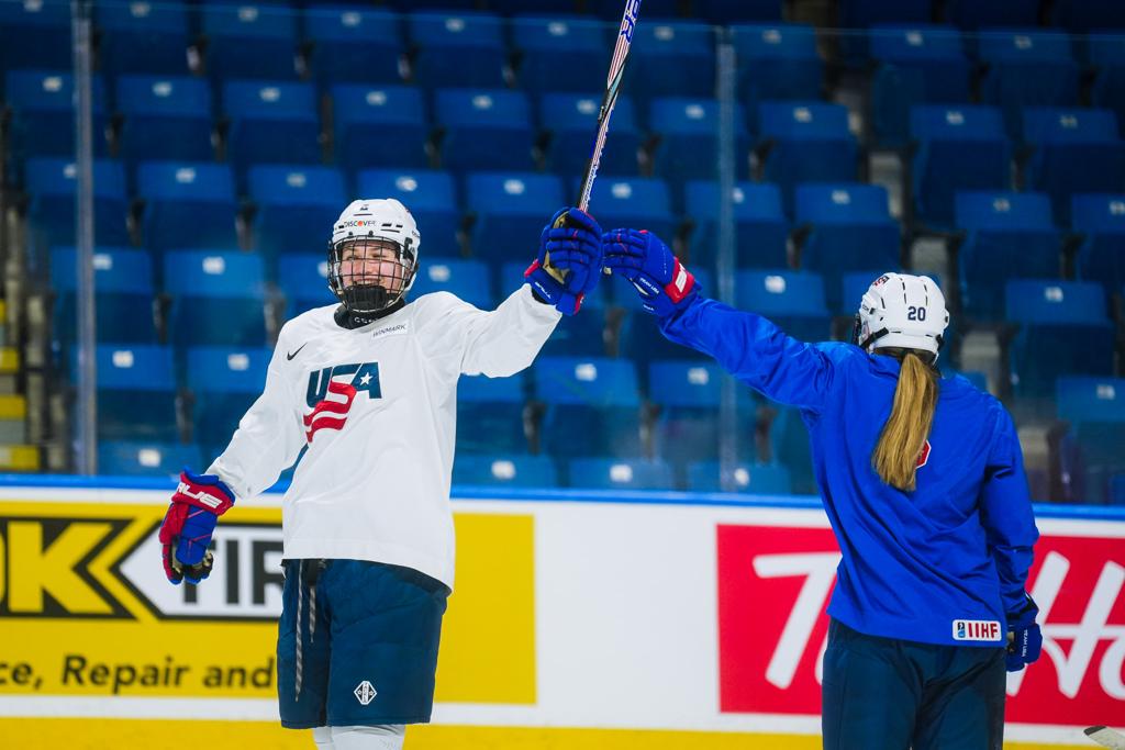 After all the fun of photo day, it was time for the first practice on the game rink. Per IIHF rules, teams are only allowed a certain amount of time for practice at the competition venue, so players and coaches are always keen to make the most of their time on the ice. The U.S. ran through its systems, knowing that its opening game against Slovakia was just over 24 hours away.