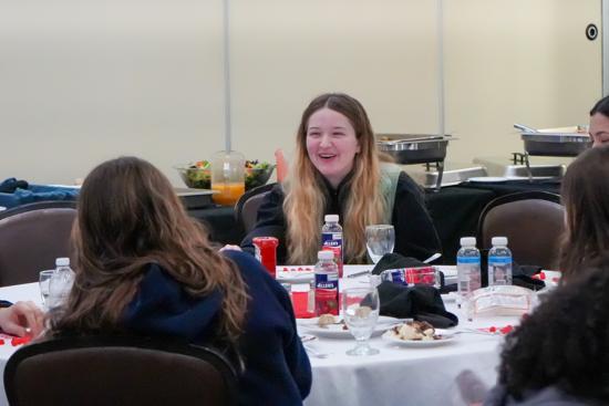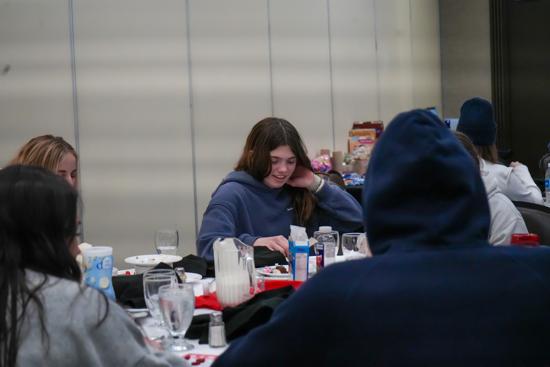 At around 6 p.m., the full team and staff gathered in the lobby to walk over to the local restaurant Governor's for a fun team dinner. The meal started with some fantastic appetizers, including wings and wonton chip nachos, before the main course. The group had a choice of pastas, steaks and sandwiches for dinner, which was delicious.
