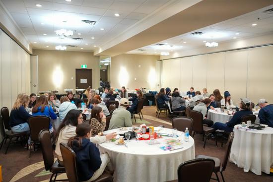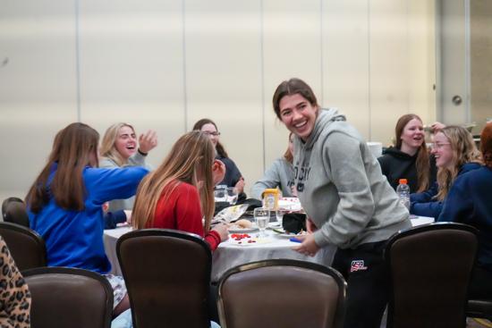 After practice, the team returned to the hotel before gathering for its first team dinner of the tournament at Jack Astor’s. Players and staff enjoyed a few rounds of Imposter, a game where players get a secret word, but one (the imposter) gets a different word and must bluff while others try to identify the Imposter. The tables were lined with butcher paper, so others took crayons and played tic-tack-toe or other fun table games, before enjoying a delicious meal.