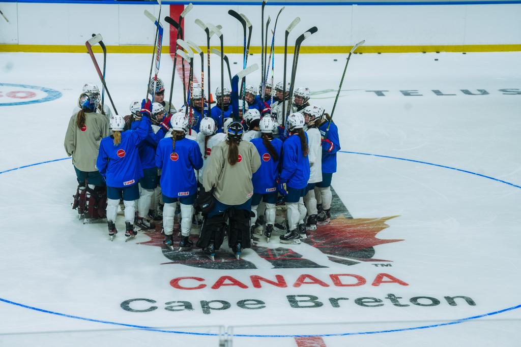 When the team arrived to the Sport and Wellness Centre to unload their gear, they were met by a youth girls hockey team lining the entrance cheering them on. About 20 members of the Cape Breton Blizzards gave Team USA a warm welcome to the rink. It may have been the loudest cheers Team USA has ever received in Canada.