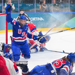 On the game-winning goal, Fasching raced down the left wing, deked around a defenseman and stretched the puck around the goalie and inside the right post. Slavin collected the primary assist.
