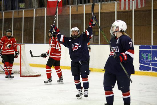 KOVLAND, Sweden – Megan Bozek (Buffalo Grove, Ill.), Monique Lamoureux (Grand Forks, N.D.) and Kendall Coyne (Palos Heights, Ill.) scored and Jessie Vetter (Cottage Grove, Wis.) stopped all 31 shots she faced to help the U.S. Women's National Team defeat Canada, 3-0, here today at the 2015 Four Nations Cup.