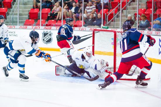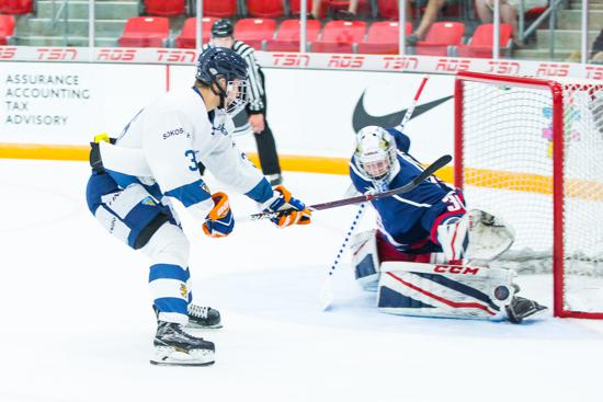 RED DEER, Alberta — Buoyed by a strong transition attack, the United States Under-18 Men’s Select Team skated to a 6-2 win over Finland on Tuesday night at Servus Arena. It was the second win in as many games for Team USA, which secured a spot in the Hlinka Gretzky Cup semifinals by eliminating Finland from contention in Pool B.