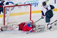 The Russians tied the game just 1:02 later on the power play when Mikhail Abramov knocked the puck out of midair on a U.S. clearing attempt, walked into the slot, and beat Pietila on the glove side.