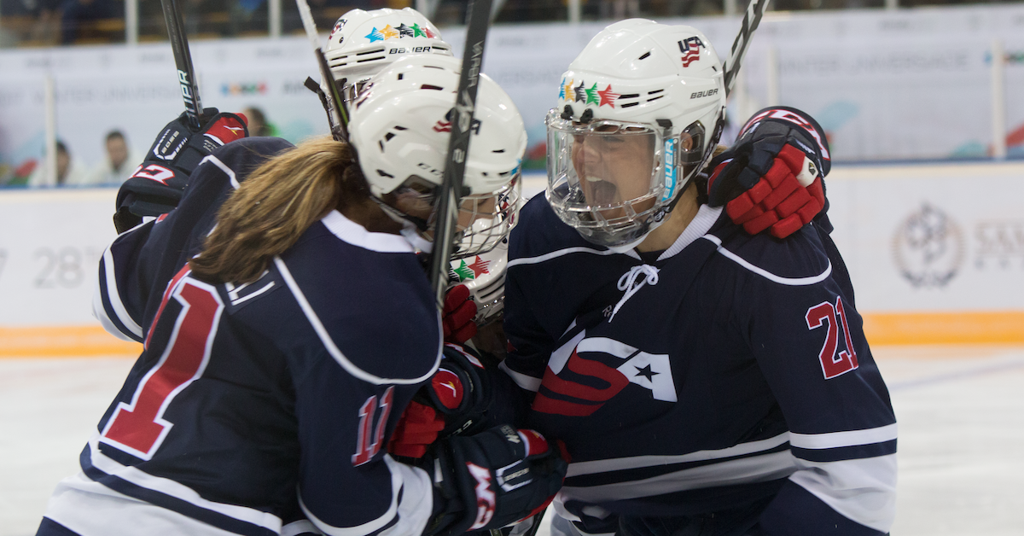 The U.S. Women's National University Team, which is composed of players that compete in the National Collegiate Athletic Association (NCAA) and American Collegiate Hockey Association (ACHA), competes every two years in the Winter World University Games.
